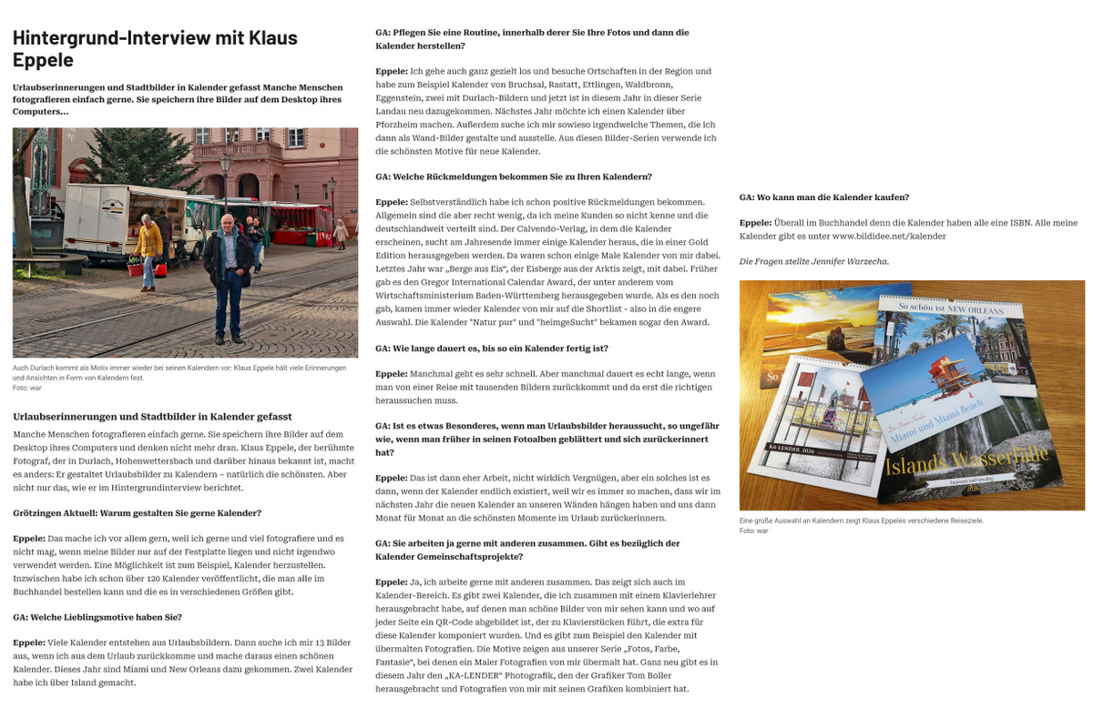 Auch in diesem Jahr hat es eine meiner Fotografien in den "Sparkasse Karlsruhe Kalender" geschafft.