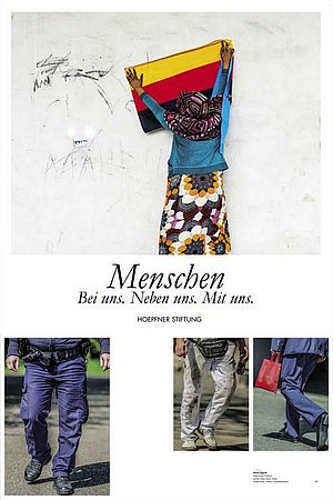 Im Ausstellungskatalog "Menschen. Bei uns. Neben uns. Mit uns." der noch bis zum 9. März 2017 in der IHK Karlsruhe stattfindenden Fotoausstellung der Hoepfner-Stiftung findet man meinen Beitrag auf den Seiten 28 und 29. (Lindemann Bibliothek, ISBN 978-3-88190-964-8) - auf dem Foto unten sieht man das Titelbild des Katalogs und meine drei Fotografien: Polizist, Maler, Geschäftsmann.