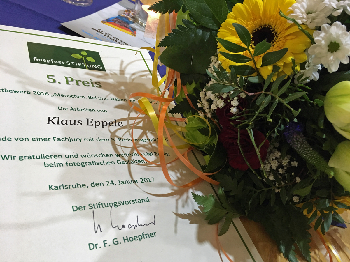 Heute Abend fand die Vernissage und die Preisverleihung für die Siegerbilder des Fotowettbewerbs "Menschen. Bei uns. Neben uns. Mit uns" der Hoepfner-Stiftung in den Räumen der IHK Karlsruhe statt. Siehe auch: https://www.bildidee.net/menschen-bei-uns-neben-uns-mit-uns/