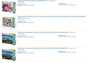 Einige meiner Fotografien kann man inzwischen auch als 1000- oder 2000-Teile-Puzzle erwerben. Eine Übersicht finden Sie hier: http://amzn.to/2qWSLz7