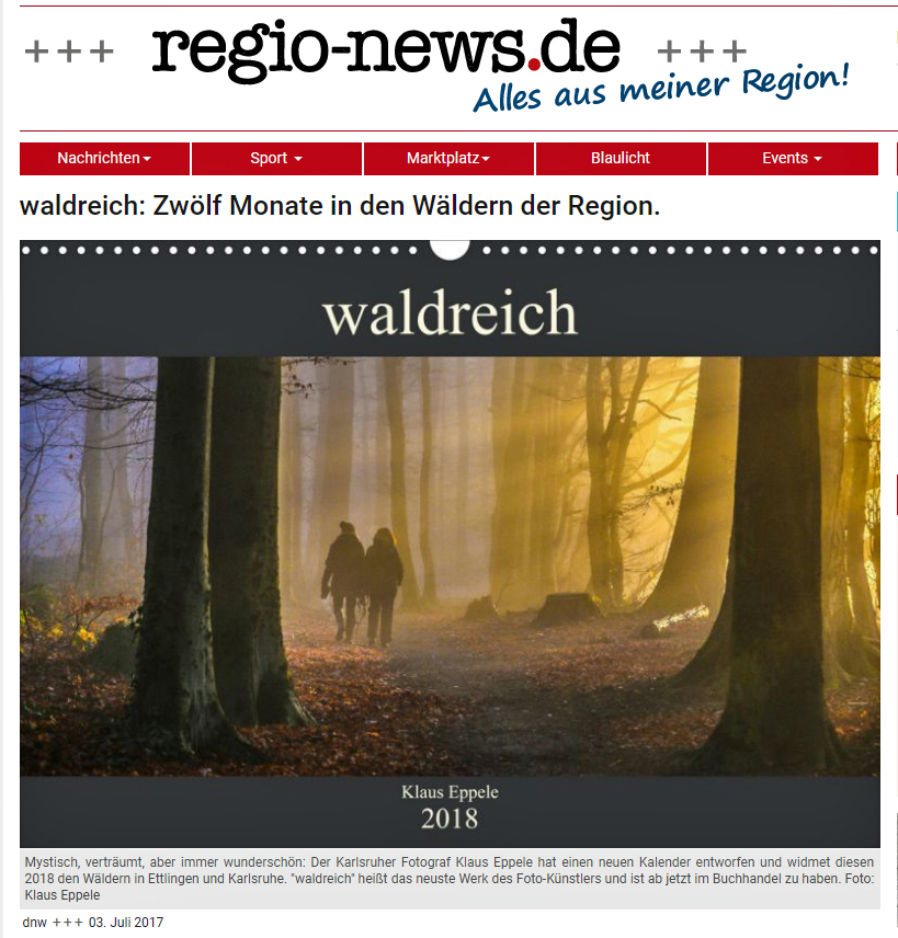 Mein Waldkalender "waldreich" wurde nun vom Calvendo-Verlag angenommen uns ist ab sofort auch im Buchhandel erhältlich. DIN A4 Wand: waldreich 978-3-669-35168-3 DIN A3 Wand: waldreich 978-3-669-35169-0 DIN A2 Wand: waldreich 978-3-669-35170-6 DIN A5 Tisch: waldreich 978-3-669-35171-3