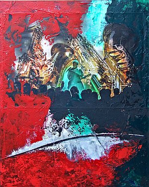 Einfach gigantisch, was Günter Weiler aus meiner Fotografie "Band" gezaubert hat. Nicht nur deshalb heißt unser neues Werk "Gig": Ein weiteres großformatiges "artpiece" im Portfolio von k/g-projects. Wir folgen mit diesem Teil unserem Slogan "Fotos | Farbe | Fantasie." Übermalte Fotografie | Unikat | rückseitig signiert | Format 100 x 70 cm auf Leinwand | Bestell-Nr.: Gig100/70 Kaufpreis: 1.480 Euro