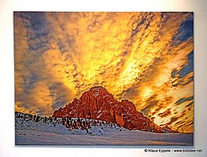 Bevor ich hier in Kürze unser zweites Werk der Größe 100 x 100 x 4 cm vorstelle, habe ich das hier gezeigte Bild "Blitzeis" und noch ein paar weitere Kleinformate auf der Seite Fotos, Farbe Fantasie veröffentlicht. Blitzeis, Format 24 x 30 cm
