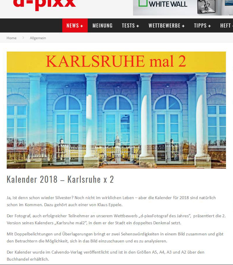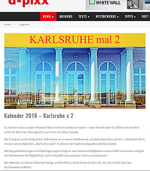 Die Fotozeitschrift d-pixx berichet über meinen neuen Kalender "Karlsruhe mal 2" https://www.d-pixx.de/2017/08/kalender-2018-karlsruhe-x-2/