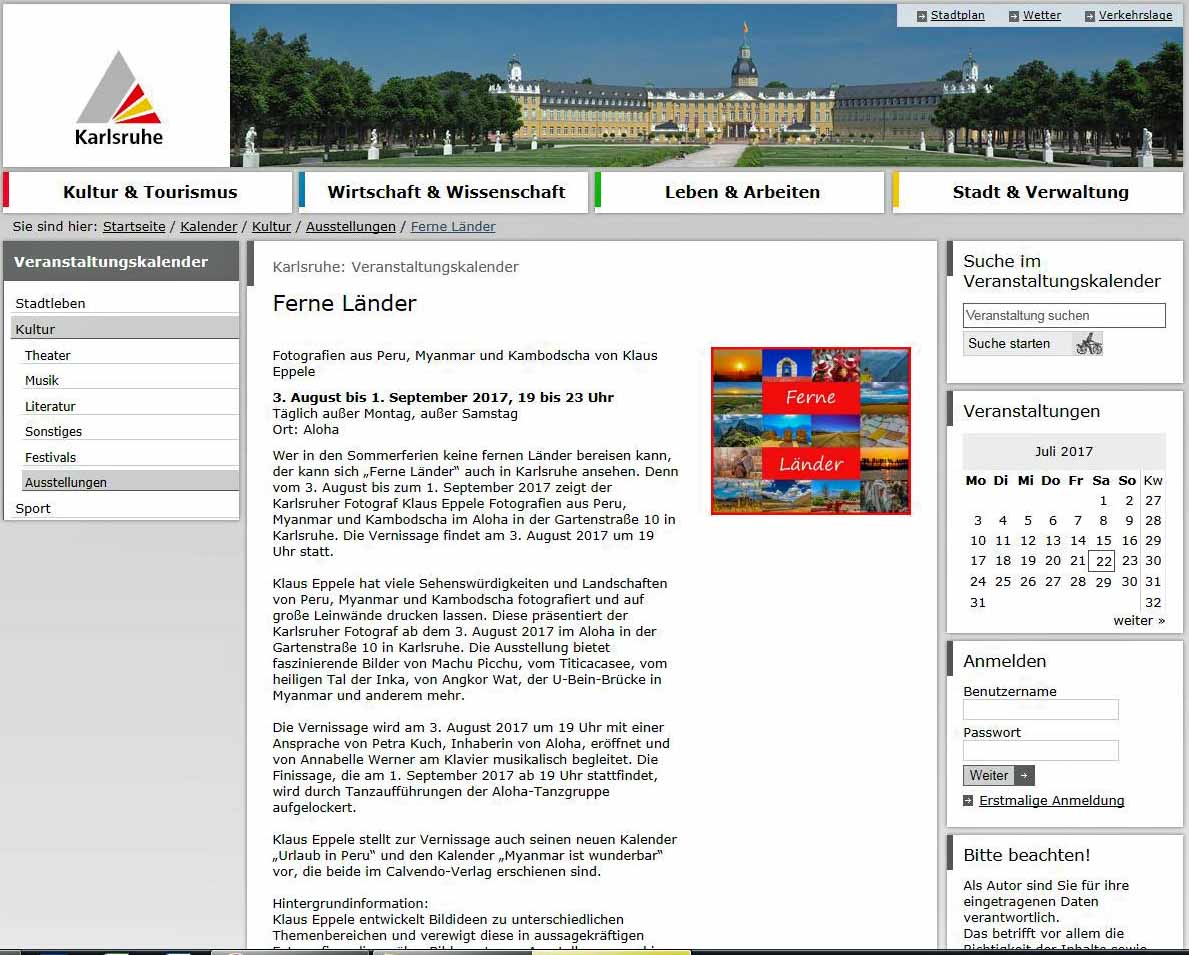 Jetzt findet man alle wichtigen Informationen zu meiner Foto-Ausstellung "Ferne Länder" auch auf karlsruhe.de: http://bit.ly/2vuBg7R