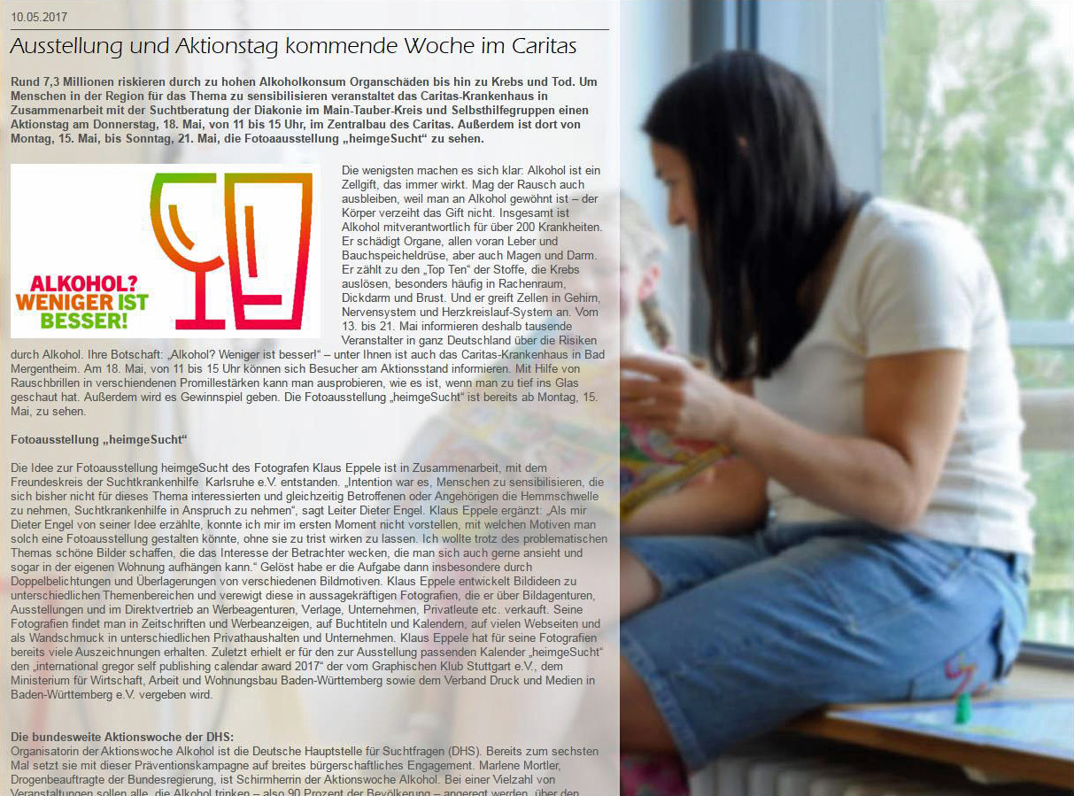 Informationen zu meiner Fotoausstellung "heimgeSucht" nächste Woche im Caritas-Krankenhaus in Bad Mergentheim. Siehe: http://bit.ly/2q56MsY