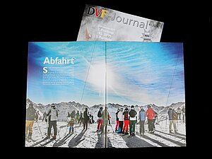 Die Ausgabe 4/2024 des DVF-Magazins zeigt ein Fotomotiv aus unserem Skiurlaub in St. Anton auf einer Doppelseite (DVF = Deutscher Verband für Fotografie).